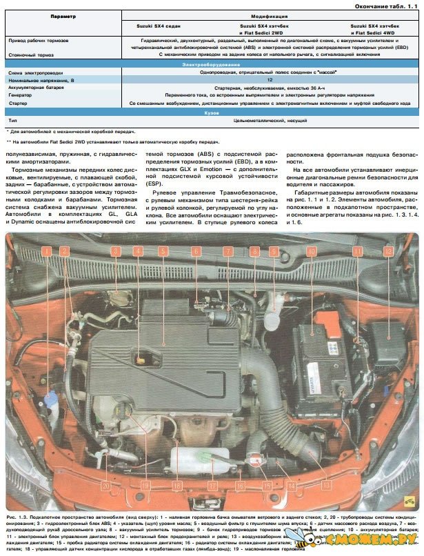 Руководство по ремонт и обслуживанию Suzuki SX4 с 2006г. на русском языке, оборудованных бензиновыми двигателем M16A рабочим объемом 1,6 л. (DOHC). Пошаговый ремонт и большое количество иллюстраций, позволяет самостоятельно отремонтировать автомобиль Suzuki SX4 даже новичку.