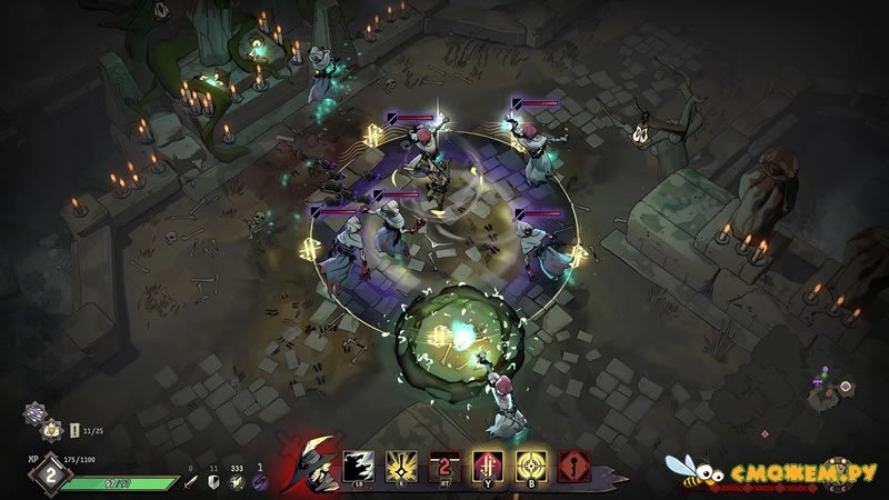 Каждый из выбранных персонажей может улучшать свои способности и тем самым открывать новые навыки, при этом каждый раз можно выбрать разную тактику чтобы получить другие навыки. Графика в игре по стилю напоминает фэнтези с мрачными элементами и с приятной динамикой действий. В игру можно играть одному или вместе с друзьями по сети, вместе всегда веселее) Системные требования: