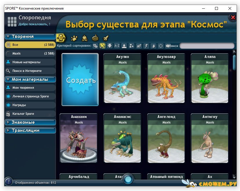 - Ни один вопрос не останется без ответа. Чтобы пребывание в виртуальном мире было приятным и комфортным, в игру встроена специальная энциклопедия — Sporepedia, где вы найдете ответы на все вопросы.