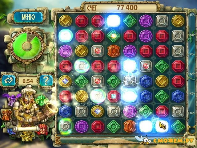 Игра Сокровища Монтемумы 3 от алавар - это игра головоломка, где вам предстоит оказаться в дворце императора ацтеков. В дворце спрятана главная сокровищница, вам нужно добраться до неё исследовав все потайные комнаты. При преодолении препятствий вам поможет энергия священных тотемов, зарабатывайте дополнительные очки, собирайте бонусы и наслаждайтесь красивыми спецэффектами игры!