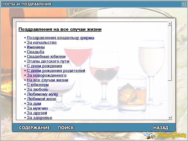 С помощью удобной системы поиска вы можете найти нужный тост сохранить его в отдельный файл или распечатать на принтере. Зарегистрируйтесь, чтобы видеть прямые ссылки на скачивание. БЕСПЛАТНО. Если ссылка на скачивание не работает, сообщите нам, мы постараемся всё исправить. Сообщить нам Если потеряли пароль на архив, то он здесь. Не забудьте сказать "Спасибо" и оставить свой комментарий.