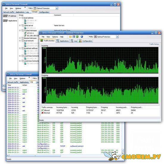 Jetico Personal Firewall построен таким образом, что отслеживает все входящие и исходящие пакеты данных. Удобная конфигурационная панель позволяет вам нужным образом настроить политику безопасности всей системы в целом. Jetico Personal Firewall является, наверное, одним из наиболее удачных программных продуктов в своей области.