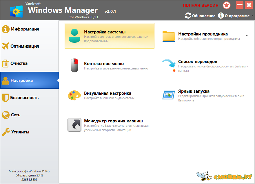 Если ты хочешь, чтобы твой комп работал, как надо, то попробуй Windows Manager. Это одна из лучших программ для Windows, которая помогает чистить, настраивать и ускорять твой комп. Она подходит под десятый и одиннадцатый Windows. Внутри этой утилиты больше сорока разных инструментов, каждый из которых даст твоему компу вторую жизнь. Все эти функции абсолютно безопасные, так что не бойся — никаких глюков не будет, когда ты пользуешься этой программой. Только правильно оптимизируй свой комп с ее помощью, и всё.