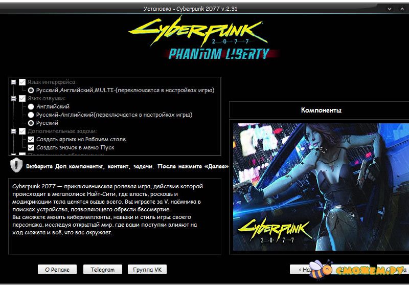 Версия игры: 2.31 + Дополнения и русская озвучка ![]() Зарегистрируйтесь, чтобы видеть прямые ссылки на скачивание. Если ссылка на скачивание не работает, сообщите нам, мы постараемся всё исправить. Сообщить нам Если потеряли пароль на архив, то он здесь. Не забудьте сказать "Спасибо" и оставить свой комментарий. Понравилась игра Cyberpunk 2077 2.31 Ultimate Edition? Оставь свой комментарий!