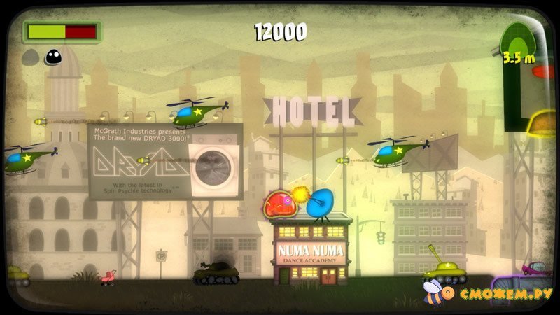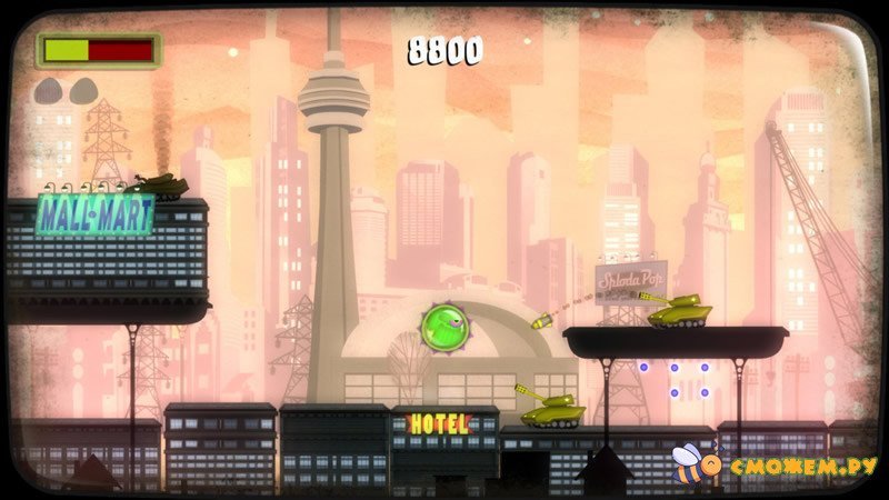 Mutant Blobs Attack - это крупная платформенная головоломка! Маленький лизун глазастик слизняк боб растет и поглощает целые города! В игре вас ждут 24 одиночных уровня кампании, а также пять дополнительных бонусных уровней с видом сверху. Необычные хитрости и разнообразие возможностей!