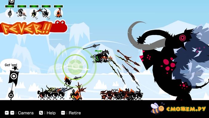 - Возможность развития: создавайте и усиливайте патапонов с помощью различных материалов, собирайте особые предметы в мини-играх и выберите из 400 видов оружия и брони