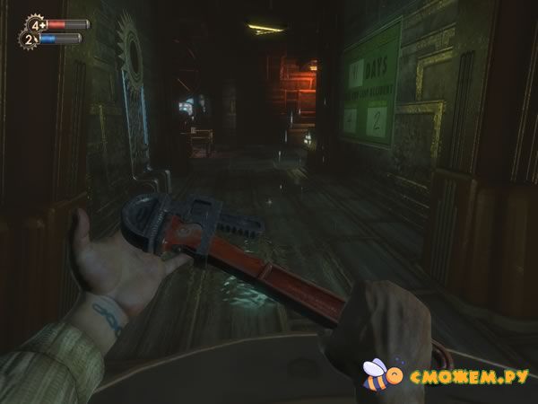 Одной из ключевых особенностей игры является возможность получить кучу классных способностей с помощью плазмидов, таких как метание молний из пальцев или выпуска роя шершней из вен. Ты можешь даже хакнуть весь игровой мир под себя, перепрограммировав вражеских роботов, чтобы они тебя охраняли, изменив цены в автоматах, и превратив пулеметные вышки в груду металла. На спец-станциях можно улучшить своё оружие, навыки и умения, а также создавать новые плазмиды из всякого мусора, который ты найдёшь по пути. И что самое интересное, в игре можно превратить в оружие практически всё - любой предмет, тело героя, огонь, воду, и даже врагов можно стравить друг с другом, если хорошо придумать.