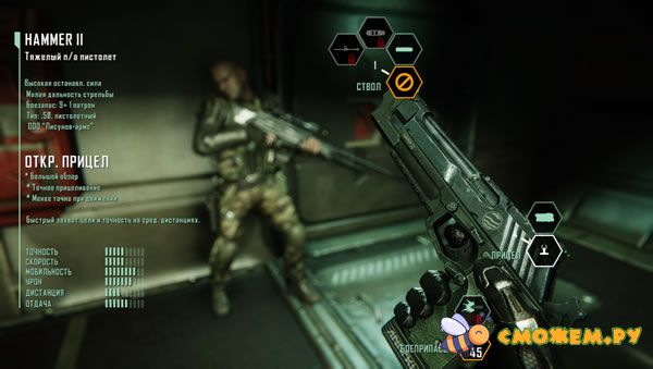 Противники в игре как люди так и пришельцы, ты можешь их мочить из разного оружия, включая высокотехнологичный лук и стволы инопланетян. По мере развития сюжета, который, кстати, очень неожиданный, ты узнаешь, что случилось с твоим отрядом, и обретешь человеческие способности.