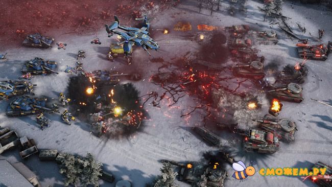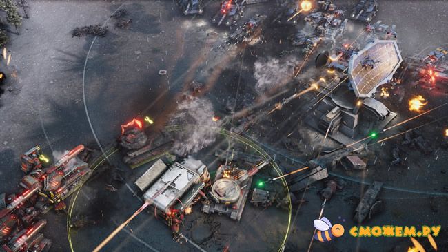 - Классическое строительство базы в реальном времени с быстрыми и динамичными боями.