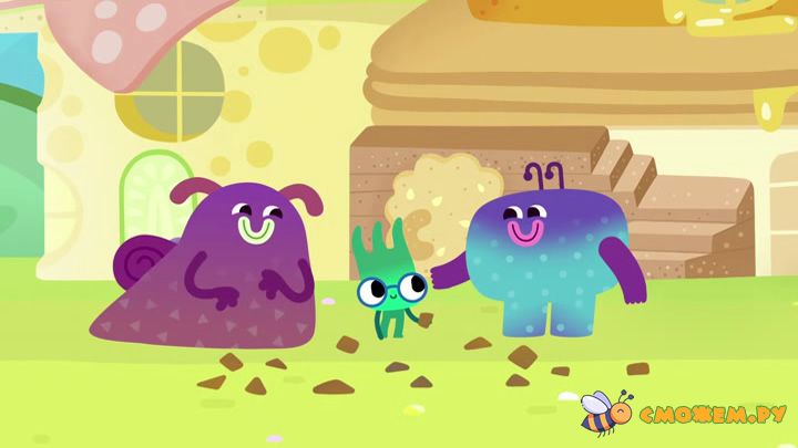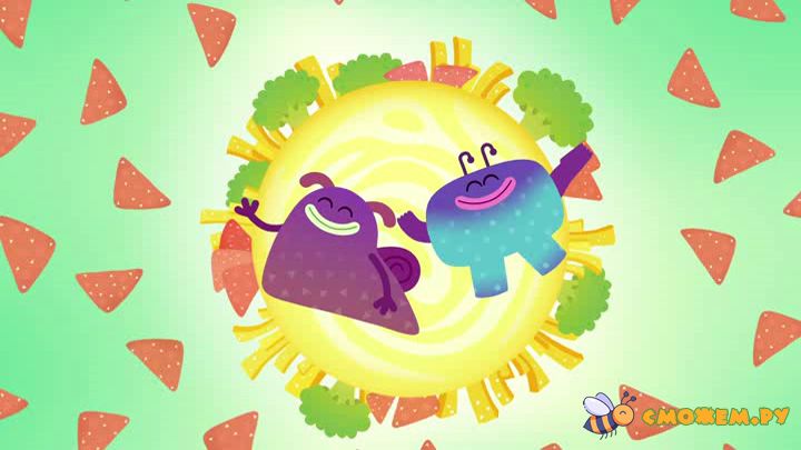 На удивительной планете, где всё сделано из еды, живут два замечательных друга-монстрика Ум и Хрум. Хрум очень любит вкусно поесть и всегда жует разные лакомства. Но вот беда! Он не знает, когда остановиться, и после каждой вкусняшки превращается в то, что съел! А его умный друг Ум всегда помогает Хруму выбираться из всяких смешных проблем.
