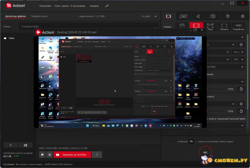 Программа для записи игр Mirillis Action! — это просто находка для всех геймеров. Тут есть куча крутых фишек и инструментов, которые делают запись игр реально легкой и быстрой. Всё интуитивно понятно: нужную функцию найдёшь за пару кликов, а записанные ролики можно закинуть на популярные видеосервисы всего за мгновение.