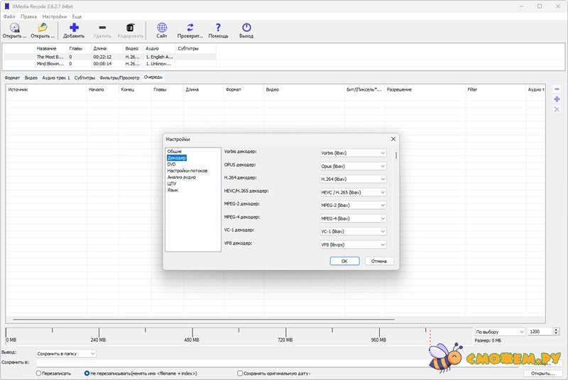 Поддерживаемые ОС: Windows 7 / 8 / 10 / 11 (32 / 64-бит) Скачать XMedia Recode portable на русском языке
