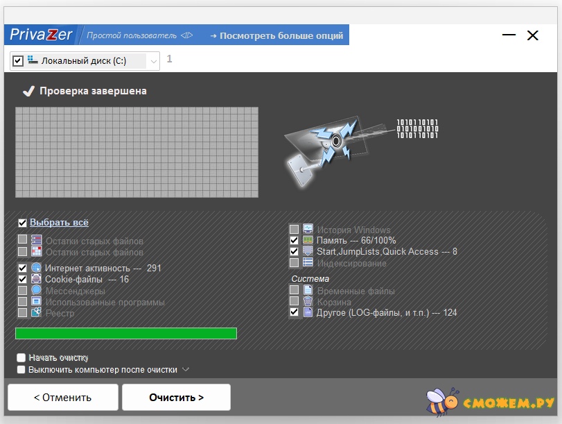 PrivaZer - это крутая утилита, которая подчистит твой комп от всякой конфиденциальной инфы, которая могла остаться в реестре, истории браузера и в кукисах. Сначала она сделает подробный отчёт о том, что нашла, а потом ты сможешь удалить всё лишнее сразу, либо выборочно, используя специальные алгоритмы.