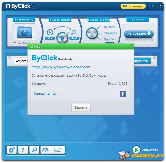 Полная версия программы By Click Downloader с кодом активации в комплекте.