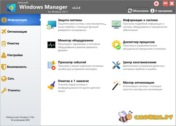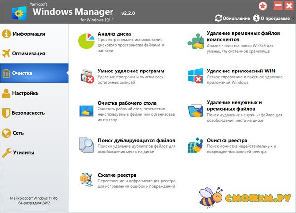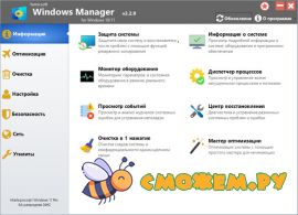 Если ты хочешь, чтобы твой комп работал, как надо, то попробуй Windows Manager. Это одна из лучших программ для Windows, которая помогает чистить, настраивать и ускорять твой комп. Она подходит под десятый и одиннадцатый Windows. Внутри этой утилиты больше сорока разных инструментов, каждый из которых даст твоему компу вторую жизнь. Все эти функции абсолютно безопасные, так что не бойся — никаких глюков не будет, когда ты пользуешься этой программой. Только правильно оптимизируй свой комп с ее помощью, и всё.