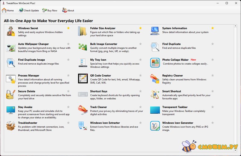TweakNow WinSecret Plus - это полезная программа для тюнинга Windows и возможности использовать операционную систему по максимуму открыв доступ к скрытым настройкам. Настраивайте все скрытые возможности Windows 10 и Windows 11 для повышения производительности, удобства и тонкой настройки доп. возможностей которые были раньше были скрыты от глаз простого пользователя.