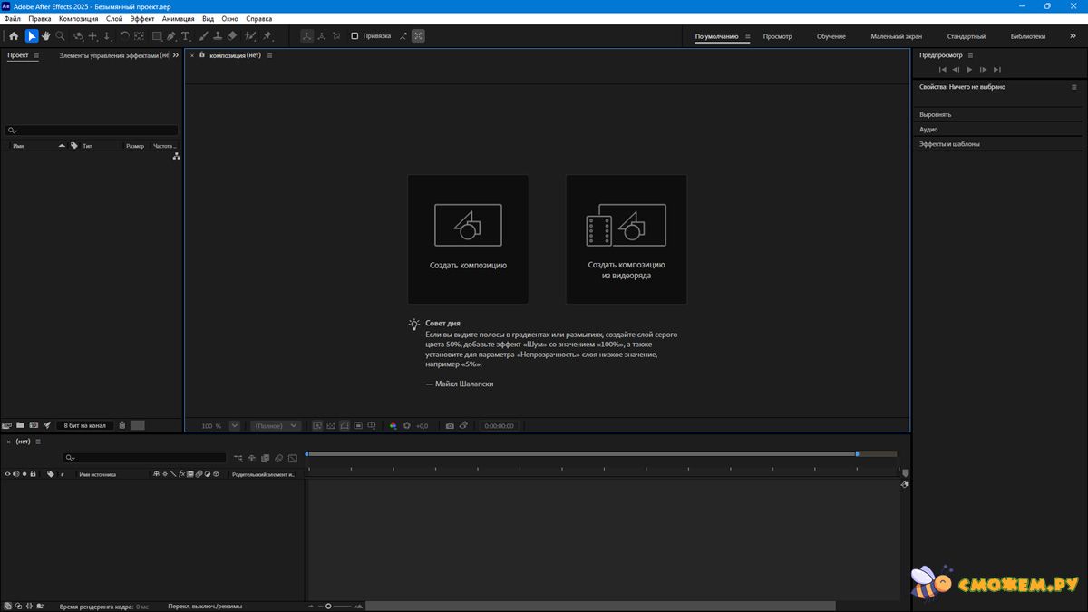 Обновленная версия мощной графической программы Adobe After Effects 2025 для анимации и создания визуальных эффектов. В новой версии добавили еще больше пресетов и шаблонов, можно добавлять текст, анимация, спецэффекты — всё на высшем уровне. Даже если ты не супер-дизайнер, ты сможешь сделать свой видео ролик неповторимым. Программа отлично подходит как новичкам, так и для профессионального творчества.