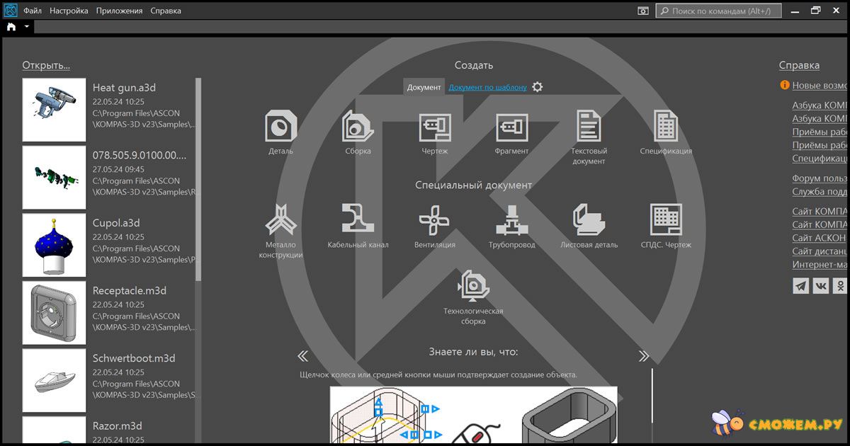 КОМПАС-3D v23 - это система трёхмерного моделирования, графический редактор и система проектирования спецификаций. Мощный инструмент для тех, кто занимается трёхмерным моделированием и разработкой изделий. В редакторе можно создавать разные виды трёхмерного моделирования - твёрдое, поверхностное, листовое и объектное, благодаря множеству приложений.