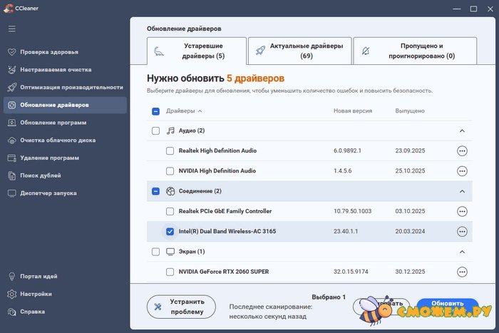 - Автоматическая уборка — умная очистка компьютера одной кнопкой.