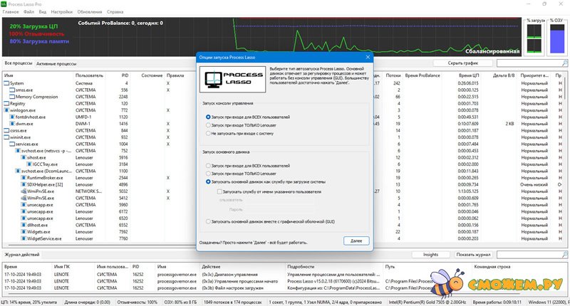 Process Lasso – это умный инструмент, который поможет вам вернуть контроль над своей системой и заставить её работать быстрее и стабильнее. Можно настроить программу так, чтобы она делала это сама, а можно и вручную – подсказать ей, какие программы нужно контролировать. Внутри неё есть технология ProBalance, которая аккуратно перераспределяет силы между программами, чтобы ни одна не захватила весь компьютер себе.
