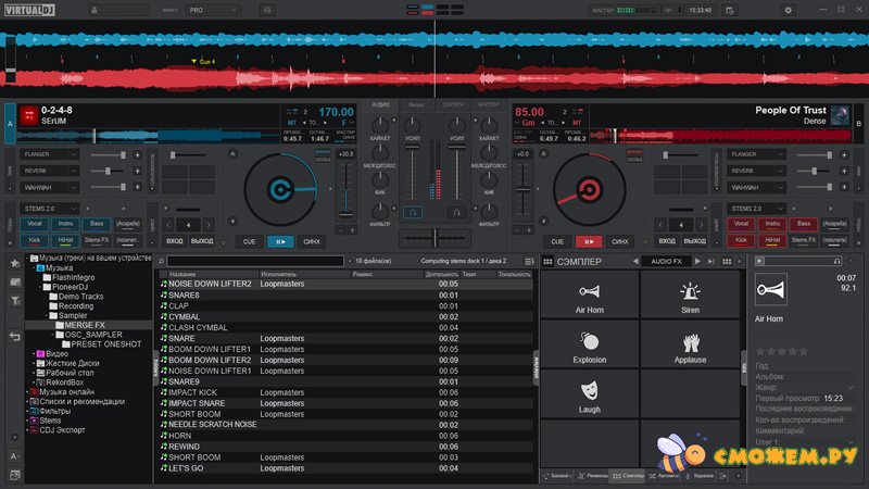 VirtualDJ – это современная программа для диджеев, позволяющая создавать уникальные миксы и ремиксы благодаря технологиям, которые раньше были недоступны. Она разделяет любую песню на отдельные элементы – вокал, инструменты, барабаны и так далее – прямо во время игры, что даёт диджею полный контроль над звучанием.